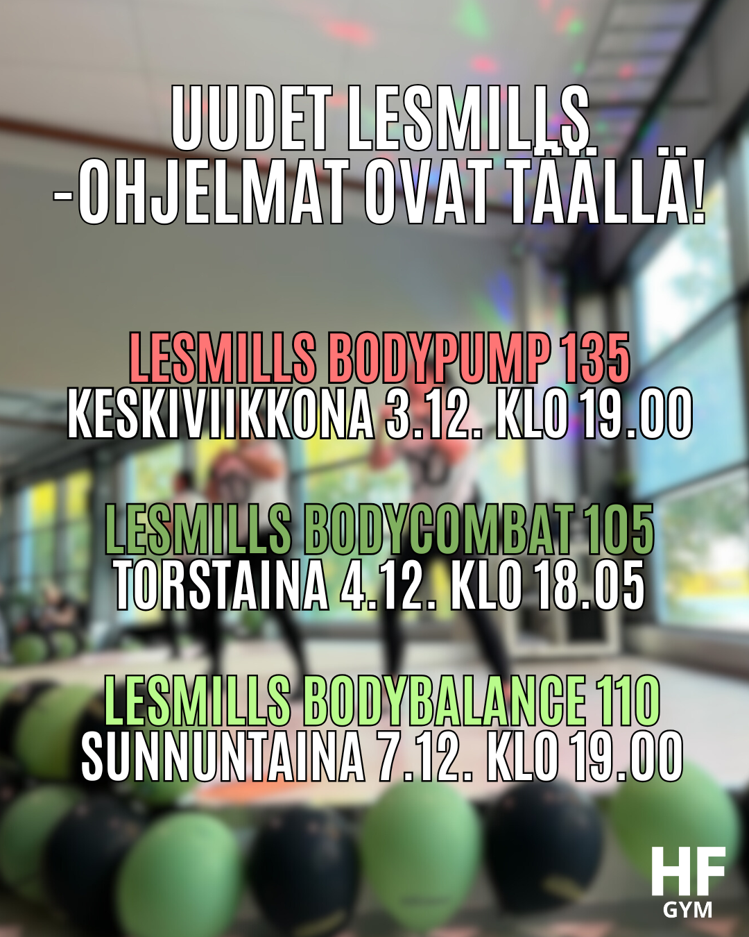 Katso mitä ryhmäliikuntatunteja pidämme tällä viikolla. Voit ilmoittautua ryhmäliikuntatunneille kirjautumalla profiiliisi.